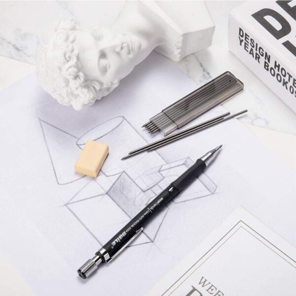 Gracias a estas cualidades, el portaminas se presenta como la elección ideal para aquellos que buscan realizar dibujos detallados, tanto en bocetos como en trabajos finales que requieran un trazo fino y controlado. Ya sea que se esté trabajando en la representación de una minuciosa figura o en la creación de sutiles líneas de sombreado, el portaminas demuestra ser una herramienta confiable y versátil para los artistas exigentes.