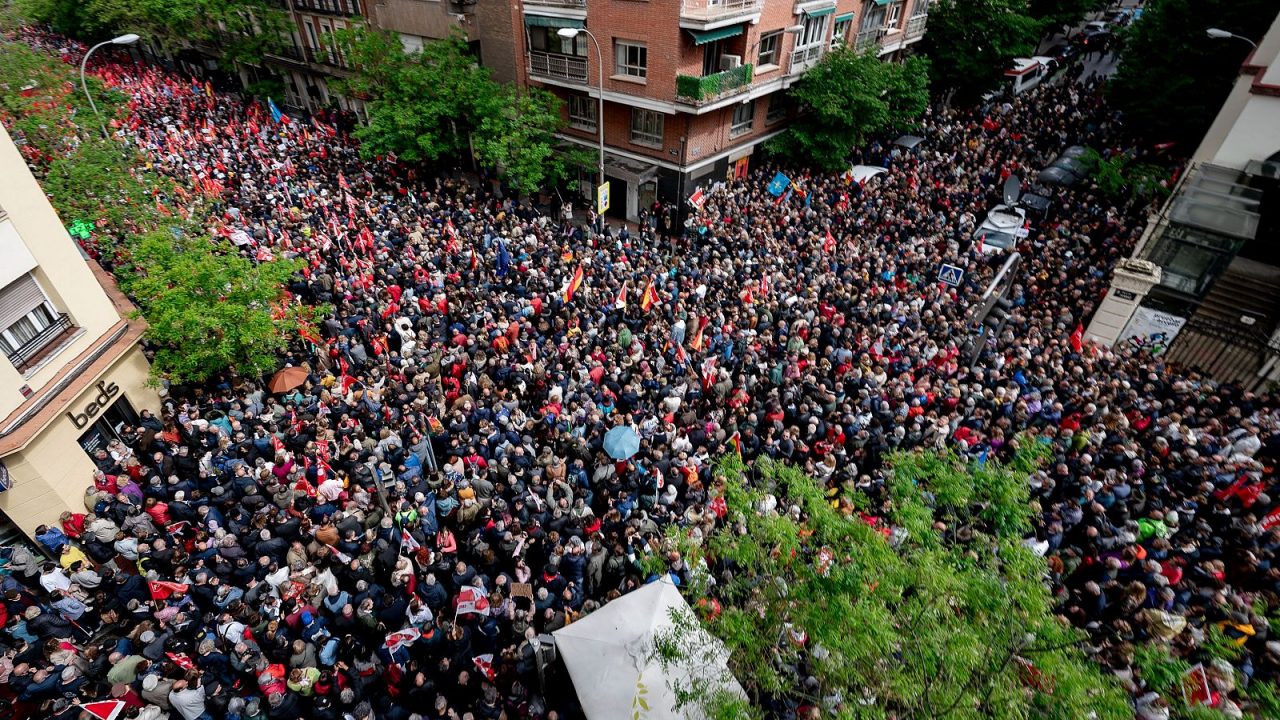 Al grito de «Democracia sí, fascismo no», «No pasarán» o «No estás solo», miles de militantes y simpatizantes socialistas de diferentes puntos de España abarrotan este sábado la calle Ferraz, en Madrid, en una multitudinaria concentración en apoyo al presidente del Gobierno, Pedro Sánchez. La lluvia y el viento no han impedido que numerosas personas hayan acudido desde primera hora de la mañana a las puertas de la sede nacional del PSOE, donde el Comité Federal del partido se ha reunido para transmitirle un mensaje «rotundo» para que permanezca al frente del Ejecutivo.